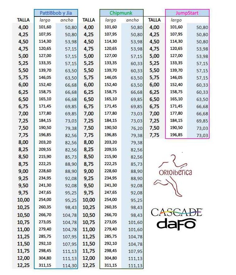 Tallas: 4.00 - 8.00 (Incrementos de 0,25 pulg.)